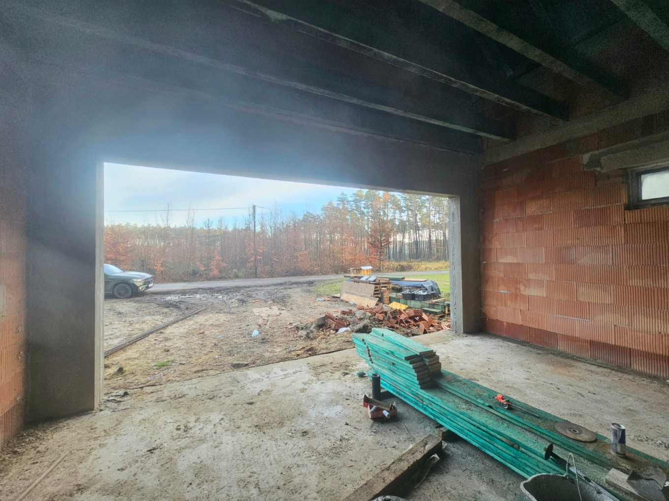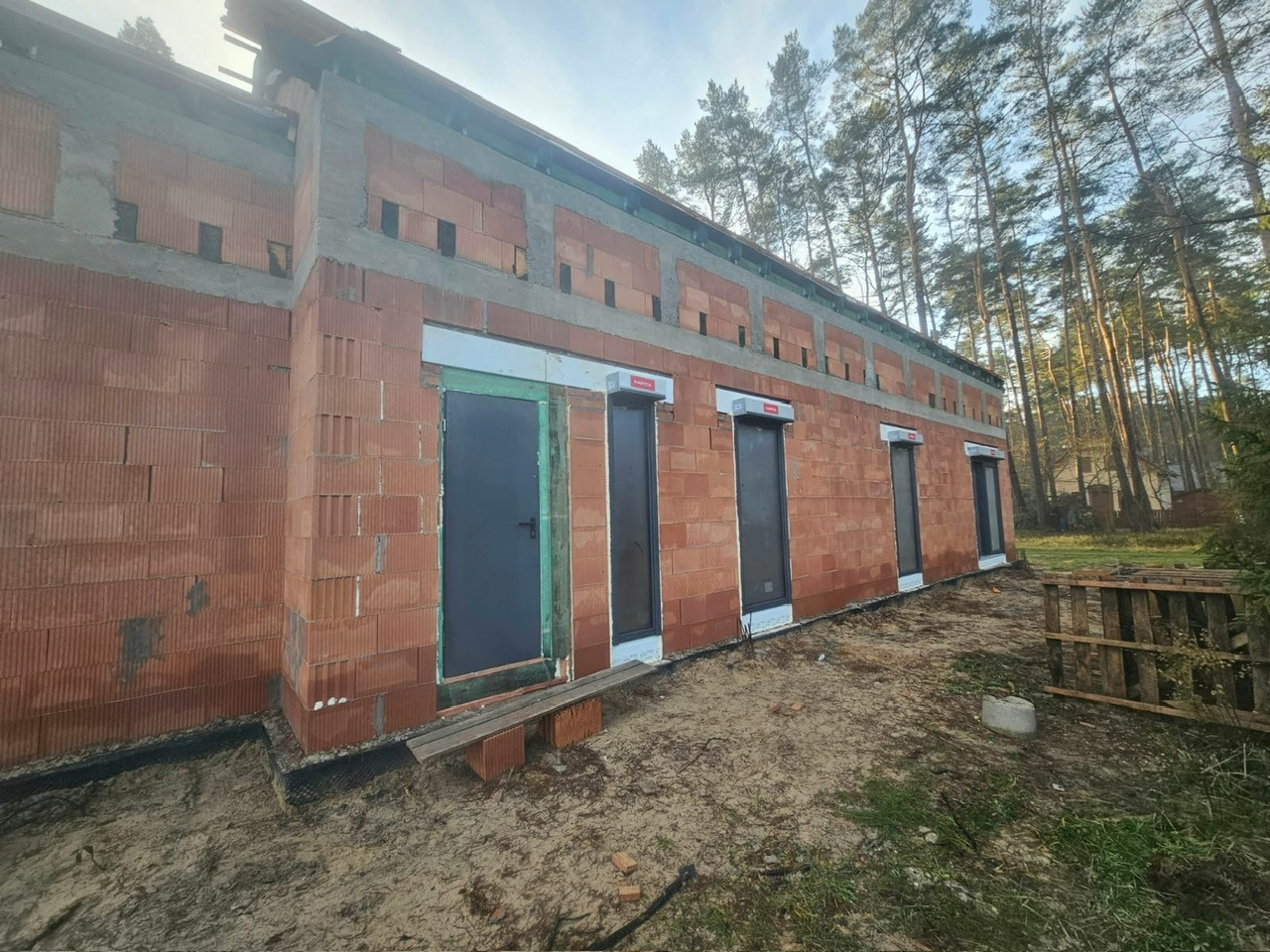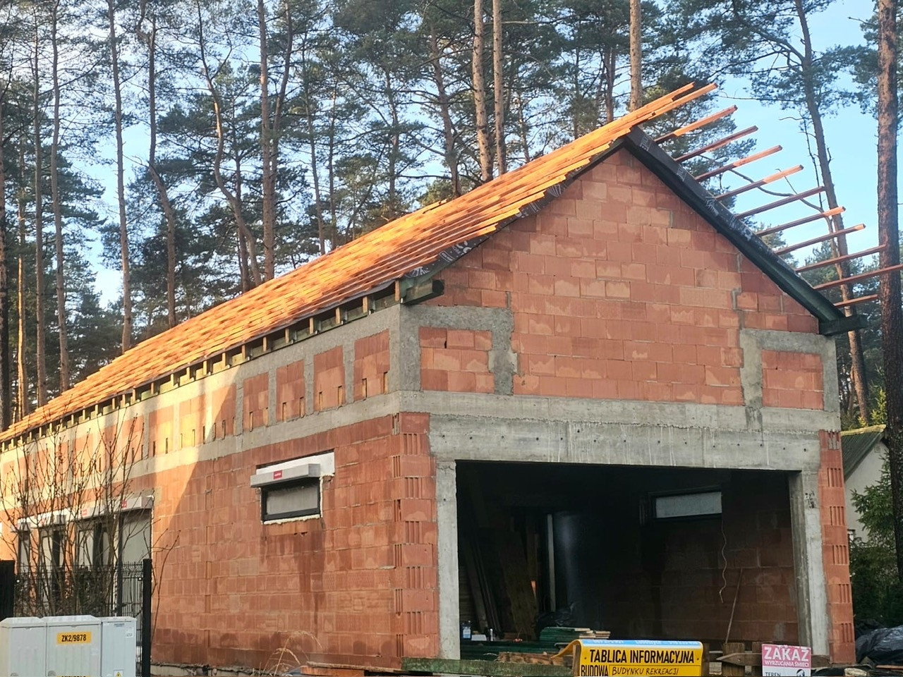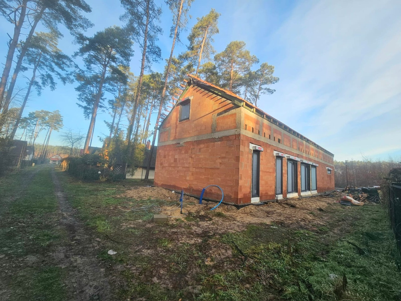 (Niestety dach jeszcze nie skończony, strop nie zamontowany, kominy nie wymurowane, schody nie wylane.